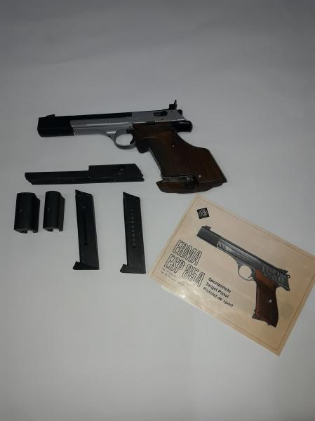 Vendo estupenda pistola alemana, en muy buen estado, marca ERMA cal 32, con dos cargadores, dos contra pesos, dos correderas una negra y otra gris plata, cachas anatomicas regulable marca Knill y un repuesto de muelle y aguja percutora, maletin de transporte. Precio 450 Eu portes incluidos[img][img][img][/img][/img][/img]