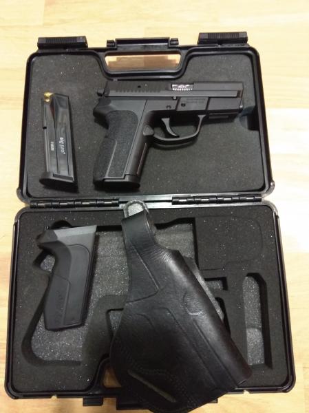 Vendida, gracias, vendo esta pistola con la que apenas he tirado un par de cajas, ya que la he usado cómo arma de defensa, al igual que el compañero al que yo se la compré, si bien no hay problema de guiarla en F. Se incluye como se ve en las fotos, una funda de cuero, otras cachas que se pueden intercambiar, y los dos cargadores con los que venía. El precio es de 325 euros con los portes pagados por mí si los hubiere.