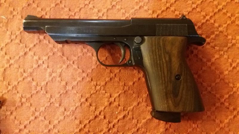 Ajustable en altura y deriva, incluye 2 cargadores, cachas de madera y dos pares de cachas de plástico además de un contrapeso.