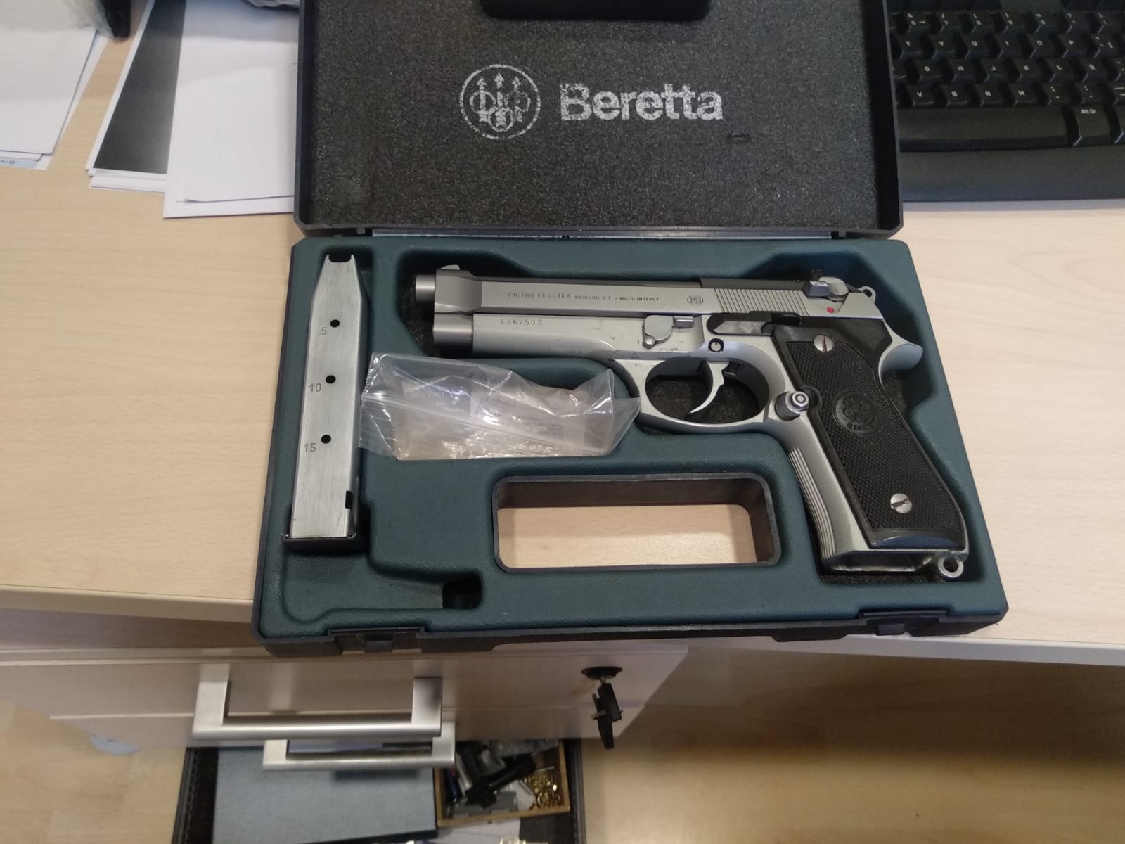 Mi amigo que sigue vaciando su armero, ya que por edad no va a renovar la licencia, me pasa para vender su Beretta 92 inox, los últimos 7 años la ha portado para defensa y apenas ha disparado.