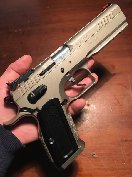 VENDO pistola de IPSC para producción de la marca TANFOGLIO modelo STOCK 3 especial, pero tiene cambiado todo el interior de la EXTREME, dispongo de todas las piezas originales sin uso, se cambiaron nada mas comprar el arma, se le cambio, martillo, gatillo, aguja, elevador de la viela del disparador, varilla del muelle de la corredera, punto de mira de fibra mas largo, muelles de aguja de corredera, de uña extractora y muelle real; la entrego con 5 cargadores con las tapas de aluminio y en su caja original que esta nueva porque nunca se utilizo, envío mas fotos del arma al que este interesado, PRECIO 1000 € ( teléfono 697530591 )