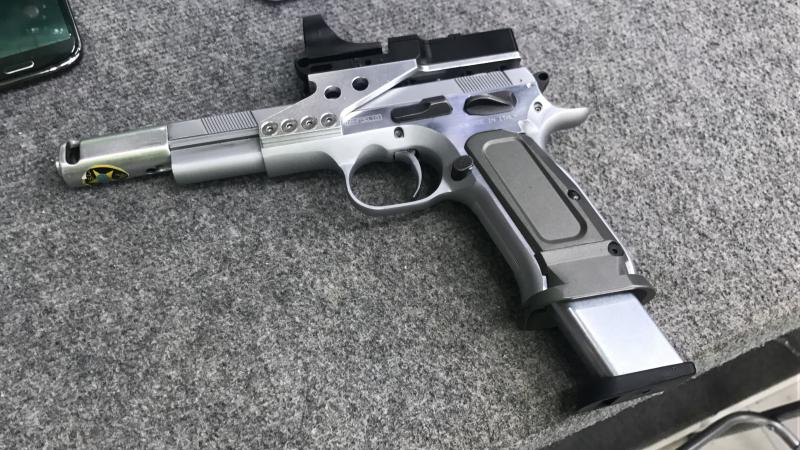 Vendo Tanaglio FT de OPEN calibre 38SA es un modelo antigua que se le cambiaron las cachas y el fanel ademas del soporte del visor (atención el visor se regala con el arma, al no ser original)se vende con dos cargadores normales y uno de gran capacidad, aunque el calibre marca 38SA el arma funciona mejor con 38SC o 9 largo, por el tipo de uña extractora que lleva instalada en estos momentos, para mas información no dudes en consultármelo PRECIO 450 € portes no incluidos ( teléfono 697530591 )