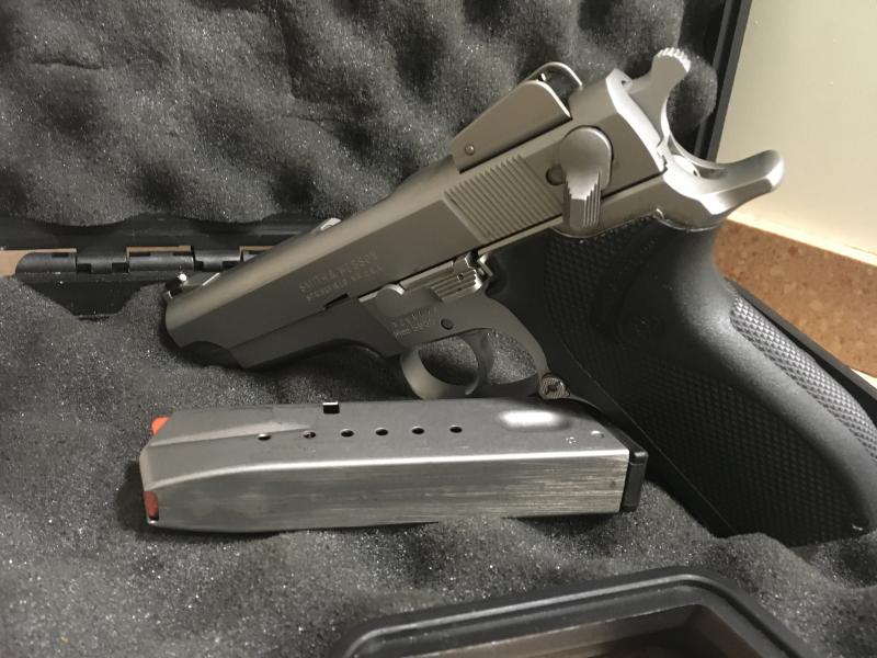 Hola, pongo en venta esta preciosa SW5906 sin uso apenas,es un arma hecha en acero inoxidable y con unos ajustes perfectos,la vendo porque no se pueden usar todas y aparte de contemplar lo bonita que es no la utilizo,va con dos cargadores y su Manual de instrucciones,se puede ver y probar en Barcelona,su precio 500€ mas portes.