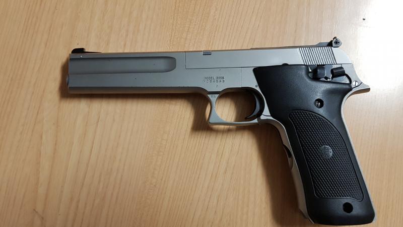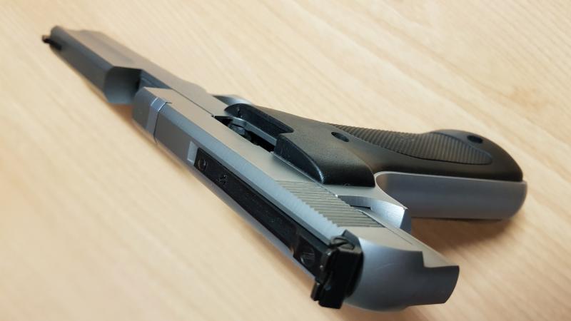 Miras regulables en altura y deriva, cómoda de empuñar y ligera (un kilito escaso), es ideal para empezar en estándar sin las complicaciones y el peso de las pistolas de competición.
