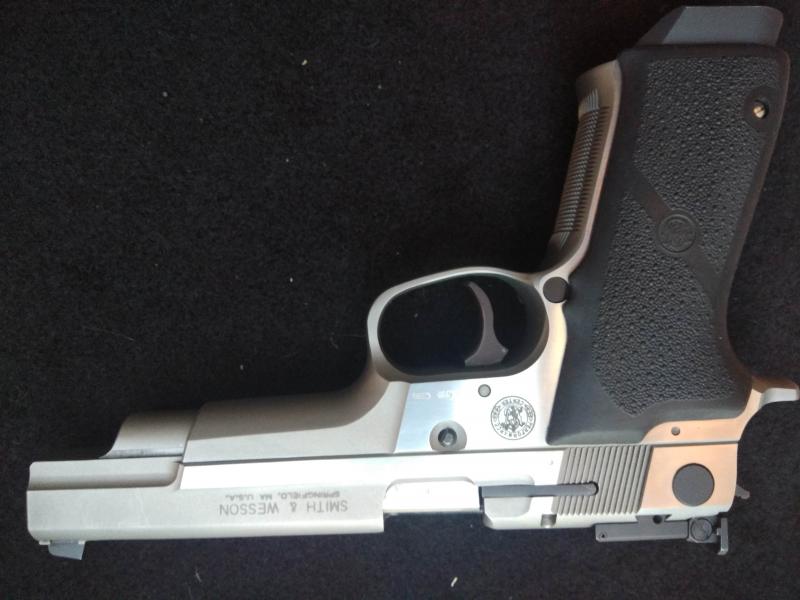 La tuya es la " S&W 5906 Target Champion", de 5 pulgadas, calibre 9mm parabellum.