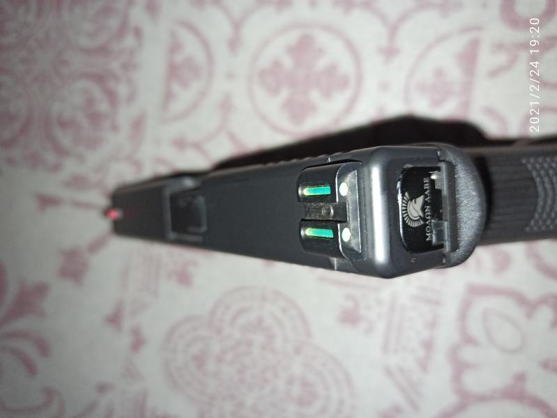 Lleva miras de fibra óptica, muelles y amortiguador antiretroceso marca DPMS con 2 muelles de distinto taraje para usar varios tipos de munición, botón de extracción del cargador sobredimensionado,palanca liberación de la corredera sobredimensionada,muelles de disparo de competición marca WOLF,muelle intermedio de 2.5 lbs, amortiguador delantero del muelle de la corredera, funnel en aluminio color negro y 3 cargadores originales glock con tapetas y muelles de +2.