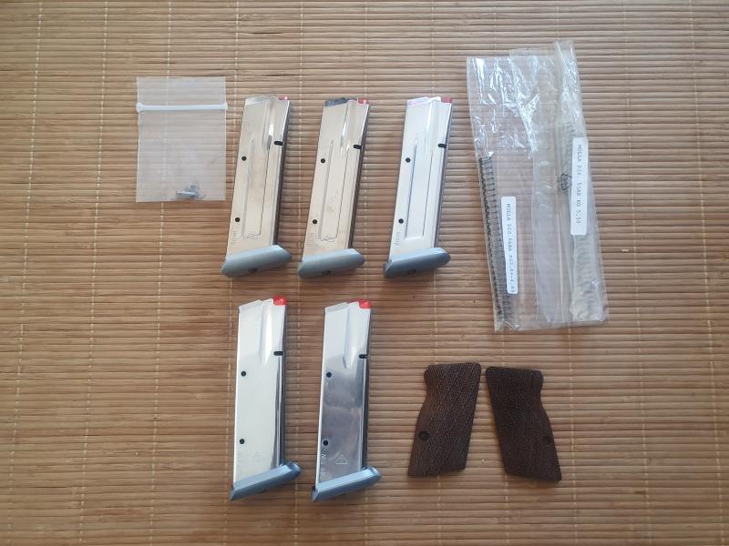 Vendo esta fantástica Tanfoglio Custom limited. Está nueva, en 9mm habré tirado 600-700 tiros y en 40mm solo 10 tiros (compré una caja de 50 y quedan 40, o sea, tiré 10). Incluyo cachas de madera sin estrenar, 3 cargadores de 9mm (1nuevo), 2 del 40 nuevos, 1 alza delantera de recambio, 2 muelles adicionales a los 2 ya montados, kit de limpieza, maletín original,