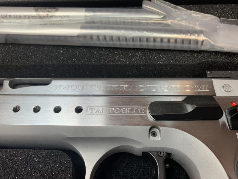 Vendo Tanfoglio limited custom, fabricada en 2020. Casi sin disparar, unas cinco cajas como mucho, depositada en la Armeria donde la compre el año pasado para el curso de IPSC, desde entonces sin usar. Va con cuatro cargadores y miras especiales para IPSC, se guardan las originales. Factura y garantía. Tengo otras del 9 mm. Sig Sauer X five e Infinity para usar y esta me sobra.