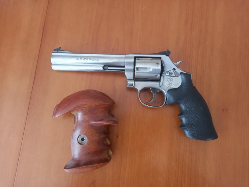 Vendo Smith & Wesson 686 de 6" como nuevo. Calibre 357 mágnum pero dispara 38 especial y 38 wad cutter con precisión asombrosa. Lleva cacha de goma y anatómica en madera. El arma está en Zaragoza, tiene muy pocos tiros y el precio no es negociable. Interesados escribir al 645862386