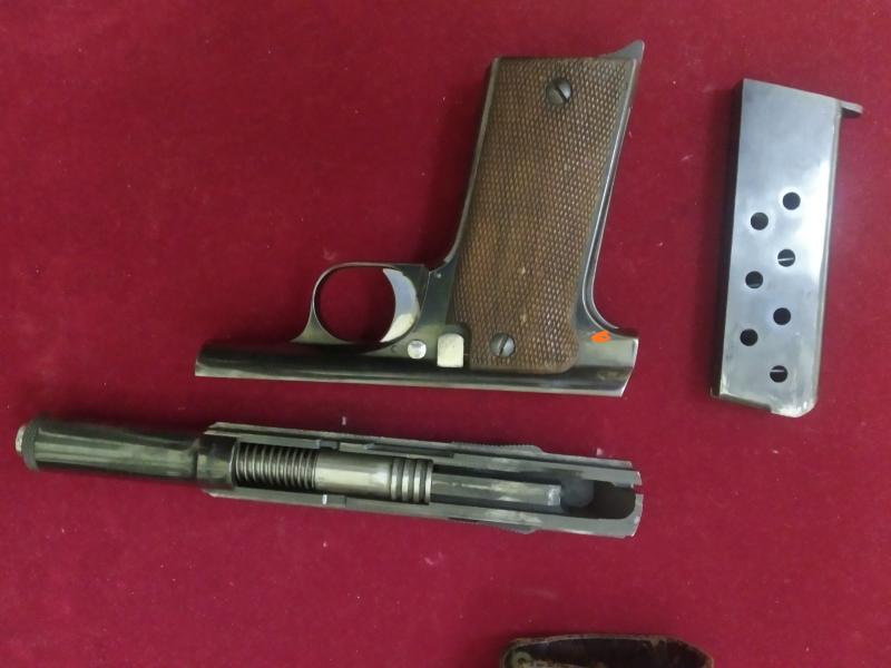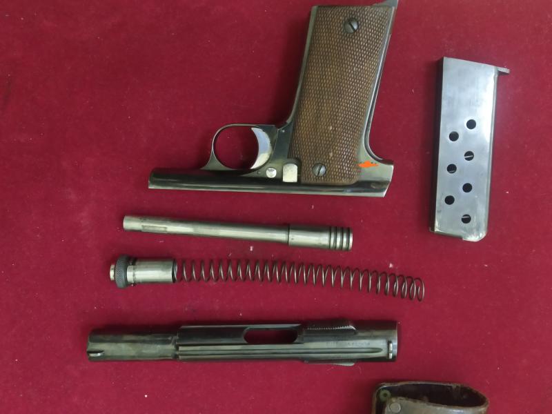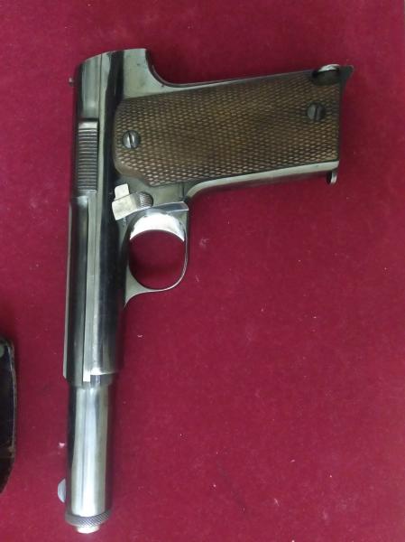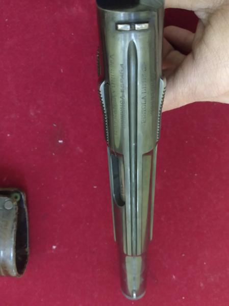 Deberias decir tambien que la pistola esta repavonada ya que en las fotos se aprecia ese detalle las originales en el interior no lo pavonaban y en la tuya esta toda negra es un dato importante decirlo.
