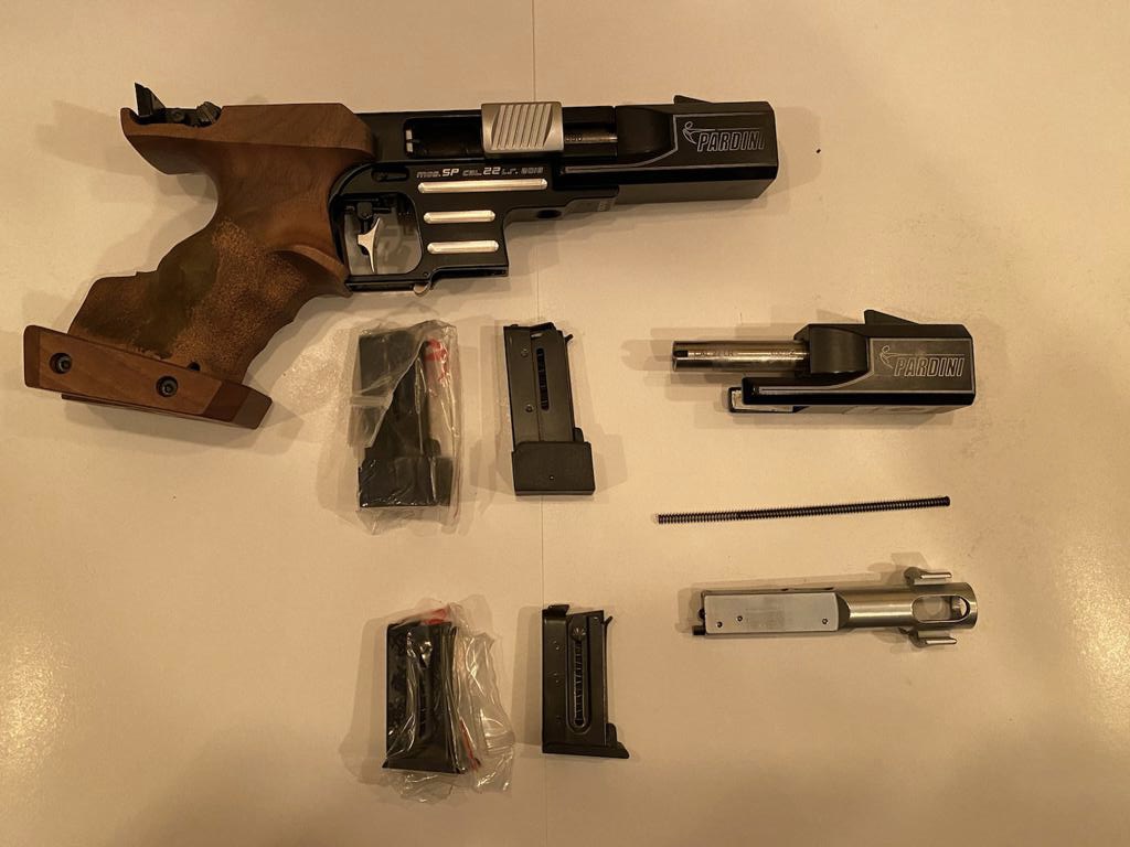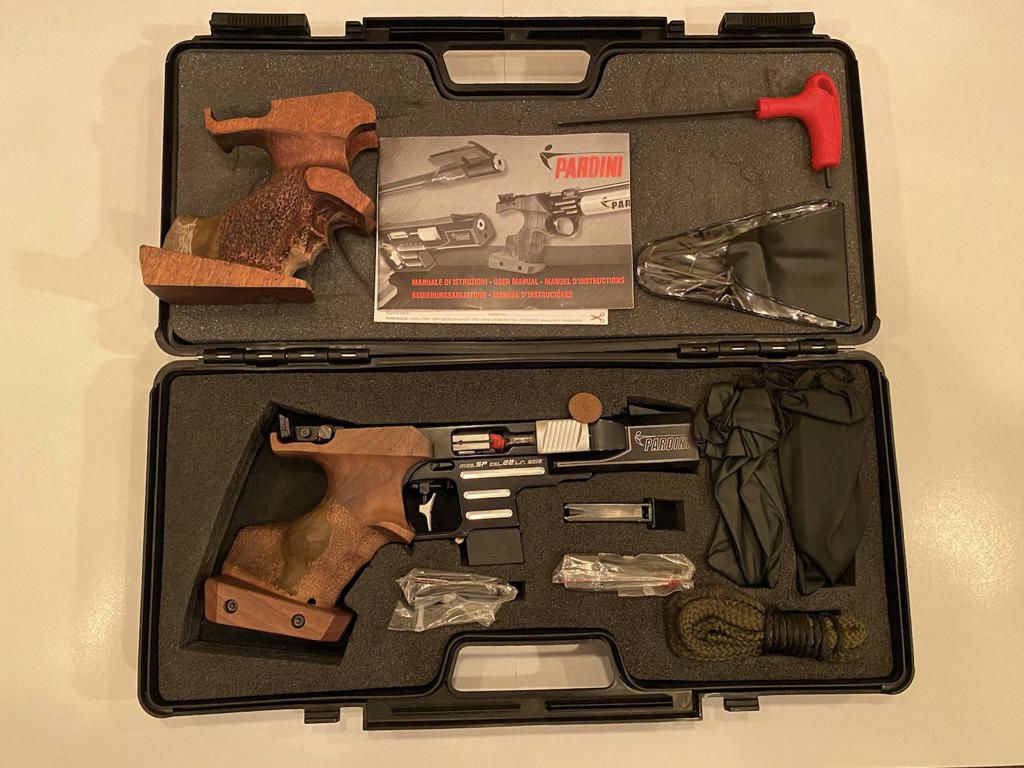 Vendo mi Pardini SP .22 RF, con kit de conversión del .32S&W, el arma tiene cuatro años y ha tirado unos 800 cartuchos de cada calibre, pocas competiciones y con esto del COVID menos aún, está amparada en guia “F” ( yo la tengo guiada en A, especificada como tieo deportivo por motivos profesionales) tiene la cacha original talla M muy poco tocada y otra cacha hecha a medida. De cada kit solo se ha usado un cargador, el otro impoluto, maletín, herramientas y kit de limpieza sin usar. Fue comprada en Ibergrips e importada de USA, por eso tiene palanca de seguro.