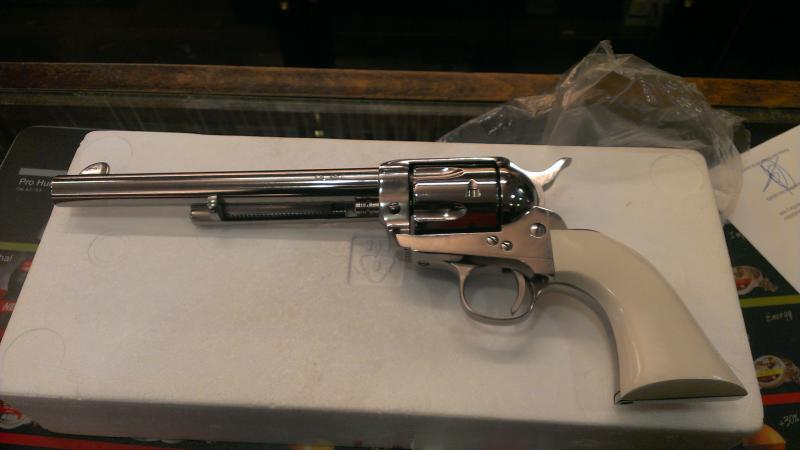 Vendo revolver 45 Long Colt Nickel con un cañon de 7" 1/2 con cachas blancas PRECIOSO