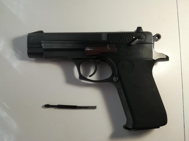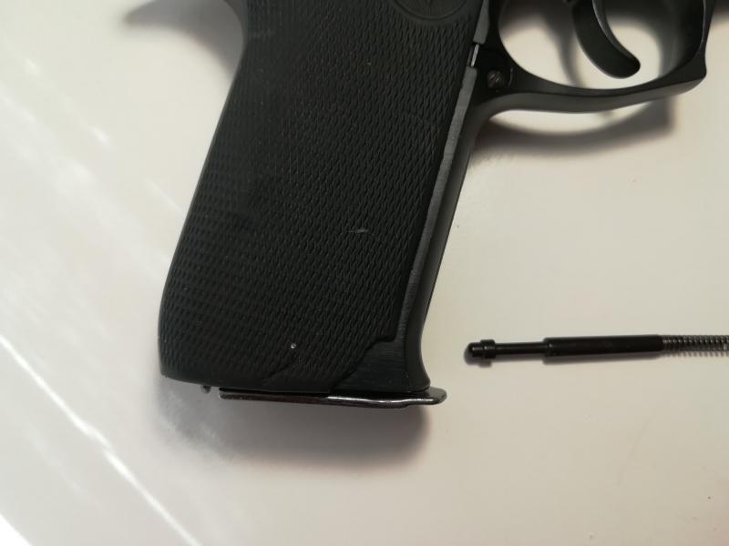 Al arma le falta un trocito de neopreno de la cacha derecha y el indicador de cartucho en recamara no funciona.