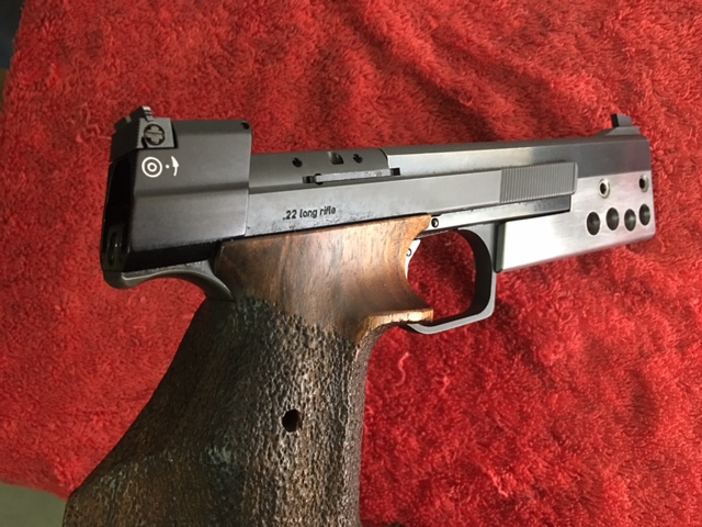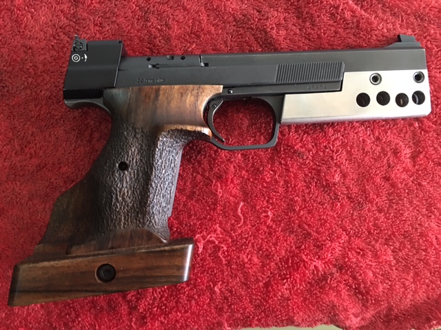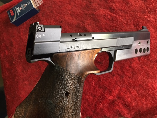 La pistola es una Hammerli 208.3 en un estado sensacional.No la da uso y la pone en venta. calibre 22 l.r.
