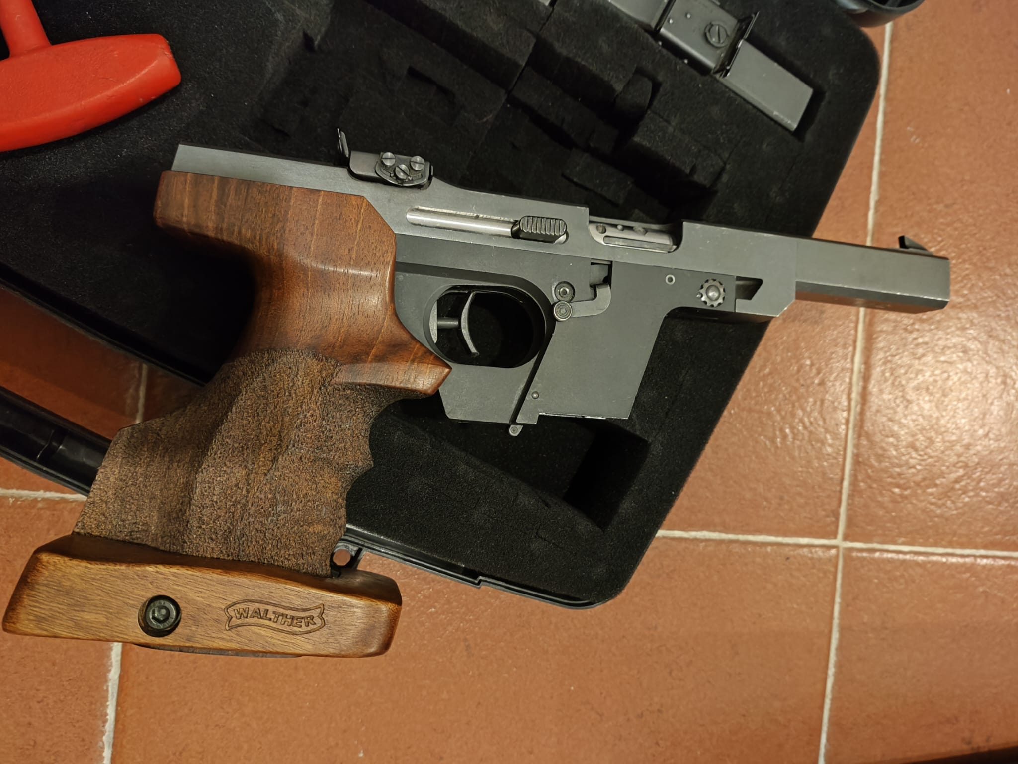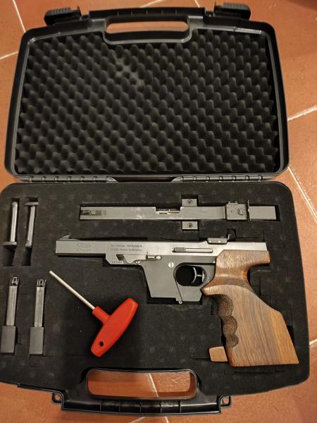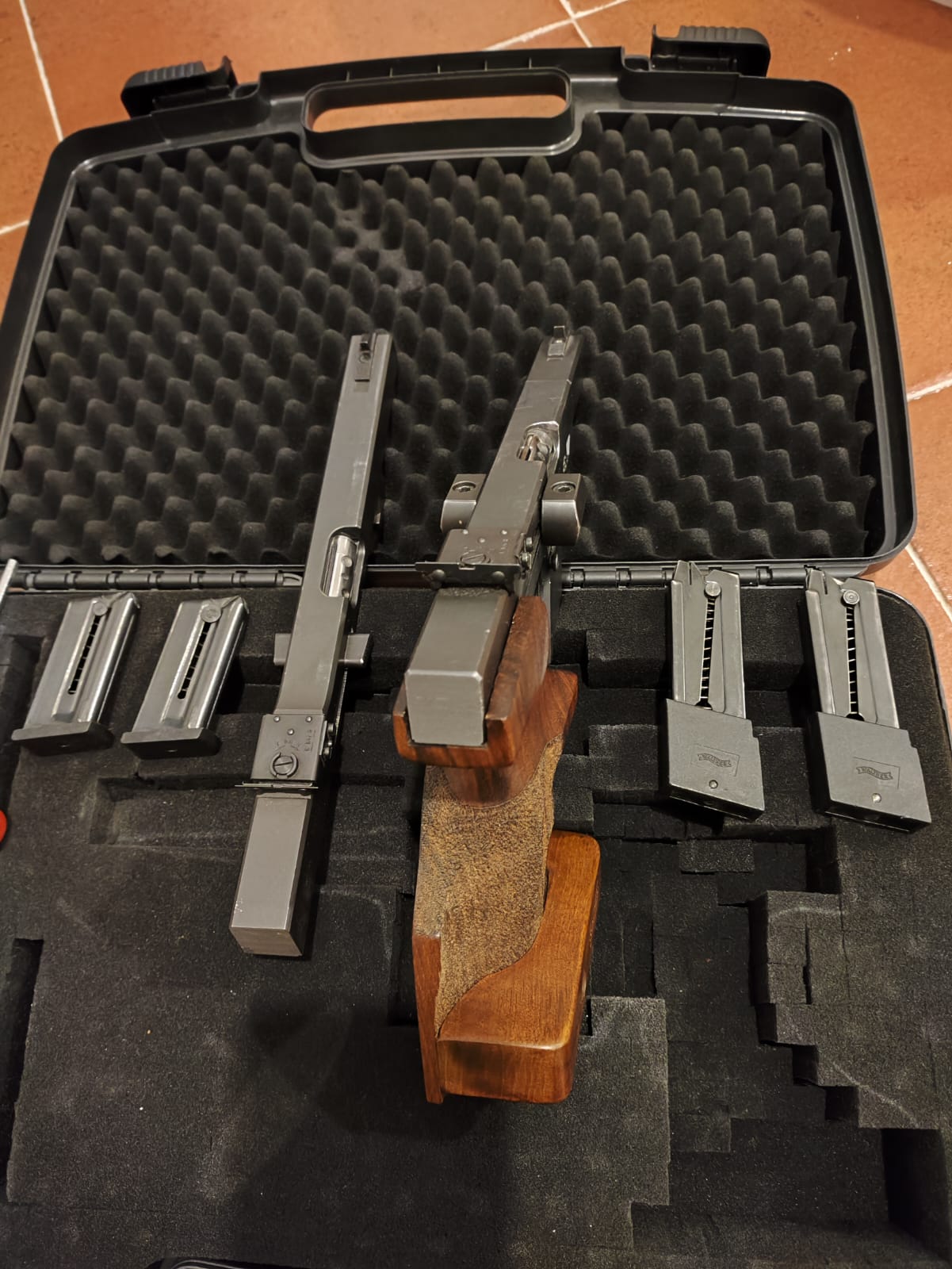 Pongo a la venta (**VENDIDA**) pistola con doble carro Walther GSP del calibre 32 wc y un carro del 22. LR, empuñadura del arma M. Se entrega con maletín, una segunda empuñadura y dos disparadores. También dispongo del maletín original.
