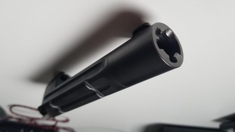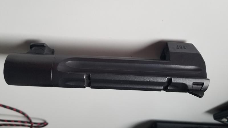 Un arma para disfrutar, cañón fijo de 6” poligonal y el cañón se cabía en segundos, aparte el desmontar el cabezal en otros segundos, con práctica en 50-60 segundos cambiando el cañón , cabezal y cargador. Es como un AR15 por toma de gases y cerrojo rotatorio. Increíble pero cierto, los gases de la combustión pasan desde la recámara a la parte frontal del cañón y este a una recámara con émbolo. No se debe emplear municion de plomo pues podría obstruir el conducto. Yo tuve una en 44 Mg una delicia de 1.950 gramos de peso, se dispara a dos manos. Suerte con la venta.