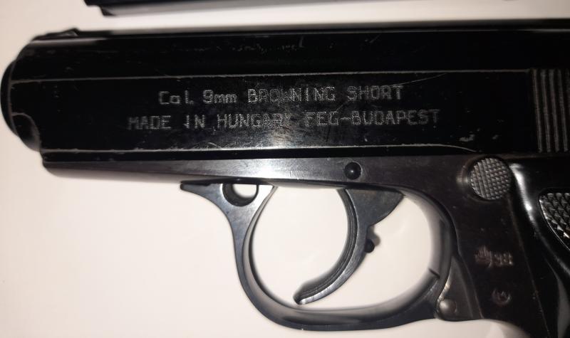 Pistola FEG, calibre 9 Corto, con dos cargadores, buen estado general.