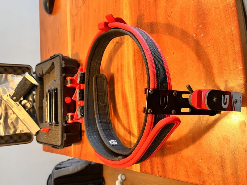 - Cinturón Ghost carbon IPSC rojo con funda Ghost Ultimate EVO roja (zurdos) y 3 portacargadores Ghost