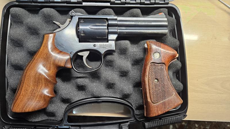 Por no usar, vendo este S&W distinguido 586 de 4" en perfecto estado de funcionamiento. Incluye su cacha original y otra HOGUE de madera. A toda prueba en Valencia. Precio 350 eur con portes a cargo del comprador. No interesan cambios.