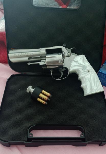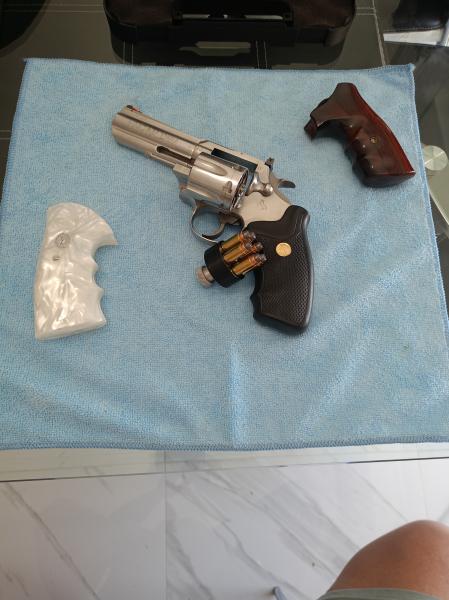 Vendo revolver colt King cobra calibre 357 MAG de 4 pulgadas , cachas de nácar me costaron 230€ con alagrama de colt , revolver en un estado excelente para fuego central hace muchos puntos .