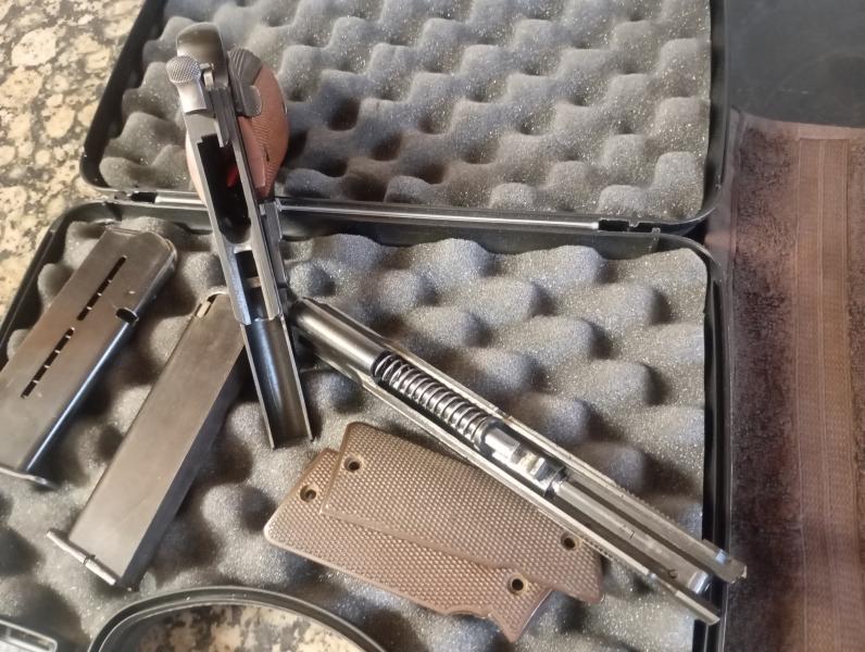 Dispone de dos cargadores y dos juegos de cachas,unas más claras y otras más oscuras. Está guida en F y se encuentra en Zaragoza.