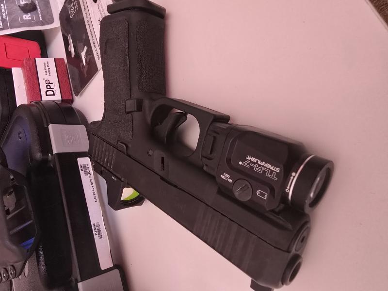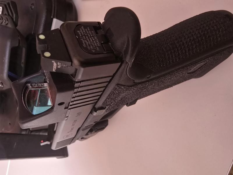 Vendo Glock 19 FS MOS gen 5 guiada en A, pistola de defensa con muy pocos disparos realizados tiene instalado Trijicon RMD2 , linterna streamlight tlr7, desconectar y muelle Diamond 3.5 libras, adaptadores Glock para distintos puntos. Alza y punto de acero sobredimensionado, funda apendice de kidex. DOS CARGADORES CAJA MANUALES Y ACCESORIOS ORIGINALES