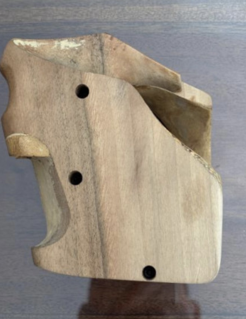 -Una segunda cacha cerrada a falta de adaptar a la mano del tirador, aceitar o barnizar.