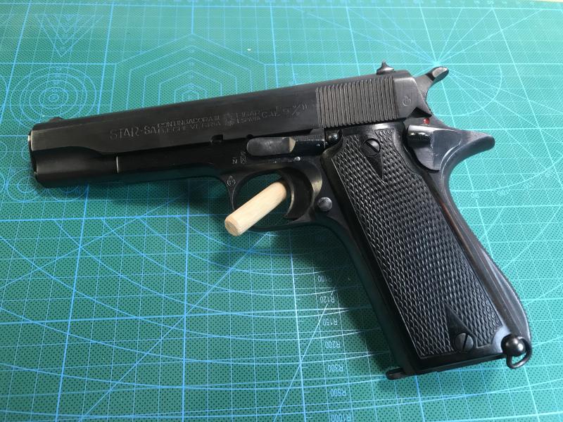 Ya la puse a la venta en el 2024 y paso sin pena ni gloria. La vuelvo a anunciar con una rebaja sustancial de precio, la vendo por 600€, y la vendo por abrir espacio en mi guía, si no no la vendería porque se trata de un arma histórica, ya que forma parte de las que fueron enviadas a Bulgaria durante la Segunda Guerra Mundial, con número de serie 234272, todos los números de serie troquelados coincidentes, con uña extractora nueva. Está en muy buenas condiciones y con la uña extractora nueva no da interrupciones.