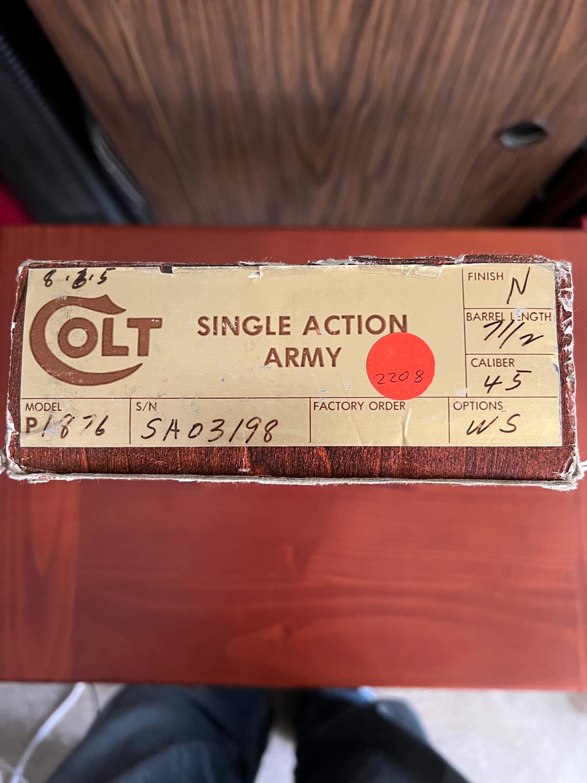 *Revolver COLT modelo SINGLE ACTION ARMY, calibre 45 Long Colt.* de 7 1/2 pulgadas de cañón.