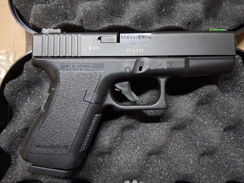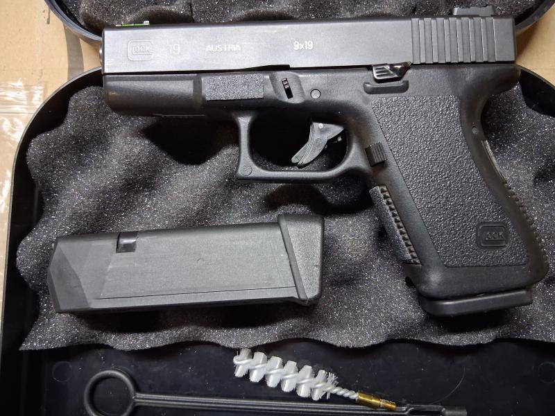 Hola. Vendo pistola Glock 19 de segunda generación. Dos cargadores,uno de ellos con base +2,miras de fibra HIVIZ LITEWAVE, retén de corredera extendido y botón extractor del cargador sobredimendionado. Guía recuperadora DPM de acero con dos muelles de distinta resistencia. Se adjunta retén de corredera de serie,alza original y punto de mira de acero. También funda IMI ROTO israelí.