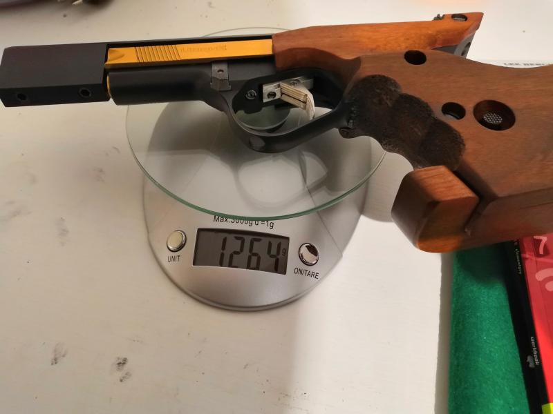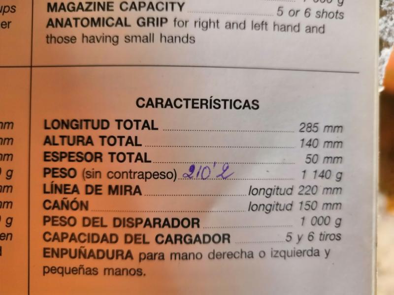 Buenas con contrapeso pesa 1264 gramos segun la bascula. Adjunto tambien foto del peso sin contrapeso segun el manual. Lo que esta escrito a boli se lo debio poner el anterior propietario. Si es el peso del contrapeso serian 1350,2, lo cual puede ser ya q la bascula que tengo es normalita