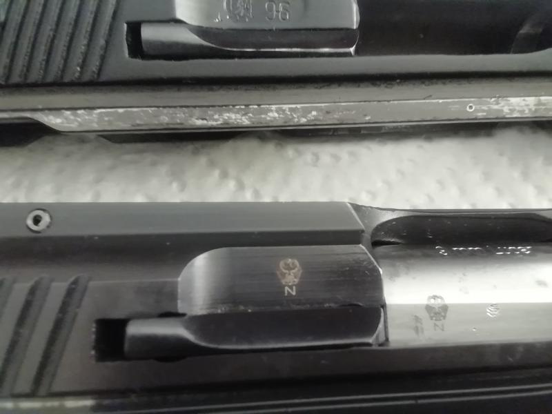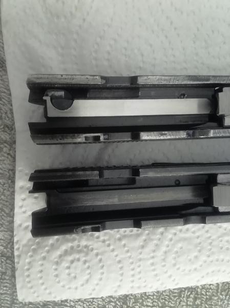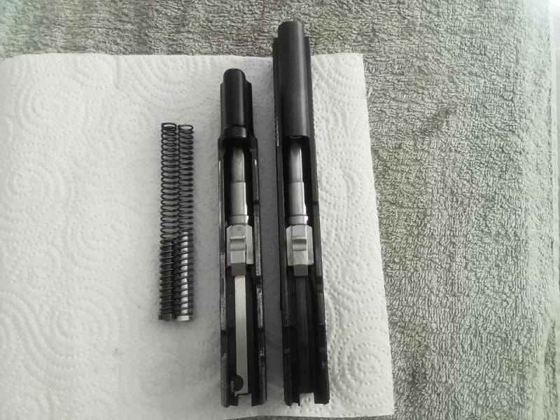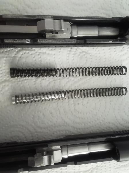 el muelle de la corredera es de la misma longitud en las dos, la guia del muelle es un poco más larga en la Sport aunque funciona en las 2 intercambiandole los muelles, las retenidas son iguales y funcionan también en las 2, las uñas extractoras también son similares, no he desmontado las agujas percutora pero se ven que son de la misma longitud,