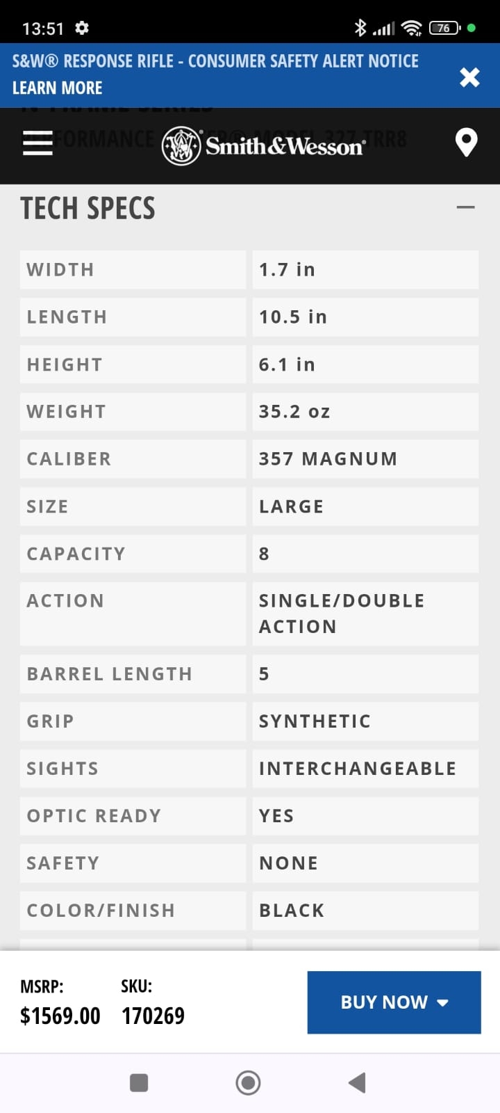 Re: S&W MP R8 PERFOMANCE CENTER 357 Magnum