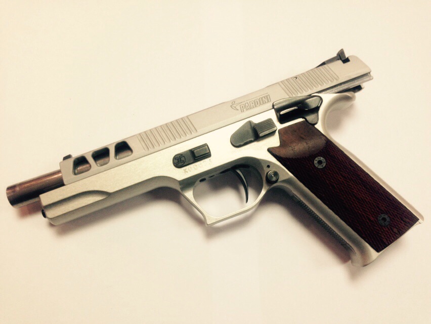 Ya que desde hace unos meses estoy practicando recorridos de tiro, necesito ir cambiando algunas de mis armas de precisión por otras mas adecuadas para esta modalidad. Como he estado compitiendo en standard y en fuego central (con .32S&W) he decidido vender mi PARDINI GT9 de 6" ya que es a la que menos uso le he dado, de hecho no he llegado a competir con ella nunca. La compré y los años pasan y no he tirado mas de 200 cartuchos con ella.