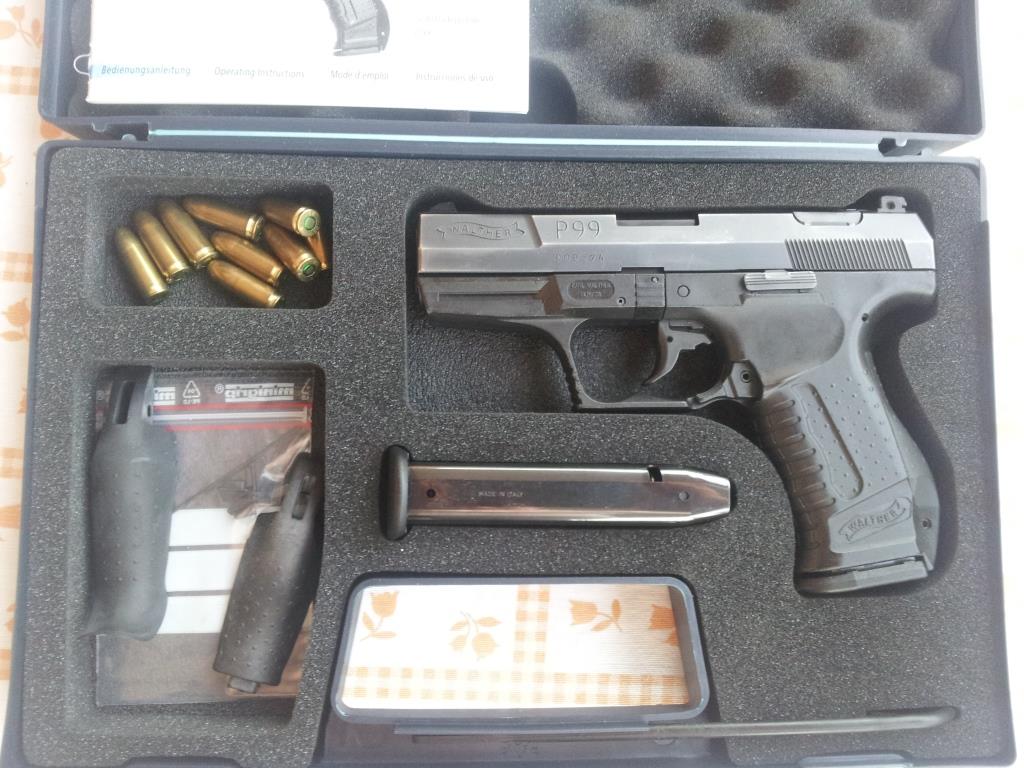 Vendo Walter P99 9mm Pb., muy poco uso, perfecto estado, maletín completo con dos cargadores, empuñaduras intercambiables, manual, baqueta, etc. Vendo por 350€. Guía Licencia "A", vivo en Guadalajara.