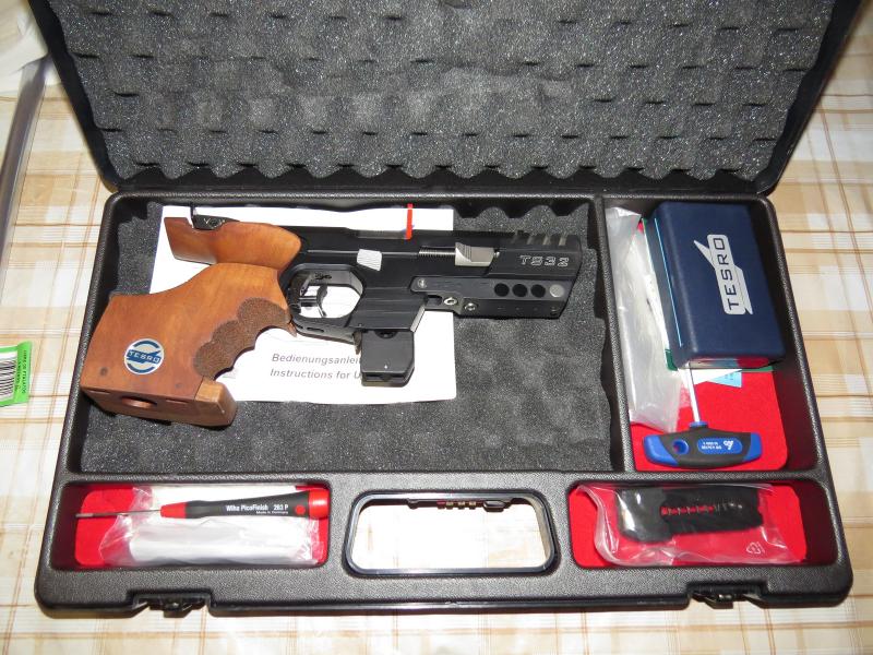 Pistola Tesro TS32 Cal. .32. No tiene más de 500 disparos. Como se ve en las fotos, con su estuche completo, herramientas, manuales, etc. Lleva contrapeso original V3. Precio 980€