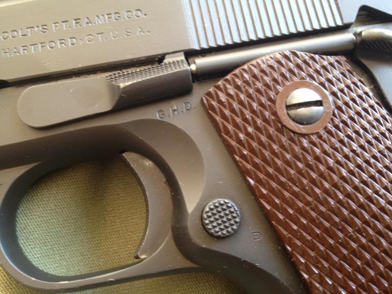 Por lo demás, una bonita colt militar. Personalmente tengo una remington rand de 1944 con corredera Colt de reemplazo militar (marcaje US ARMY en el lateral derecho) y no la vendo por nada.