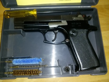 Vendo pistola Star 28PK en impresionante estado, en su caja original del Cuerpo Superior de Policía, con su manual original, útiles de limpieza originales y un estado im pe ca ble. Habrá hecho no creo que llegue a 50 disparos (lo justito tras limpieza y limpieza). Viene con un 2º cargador (aunque no salga en la foto)