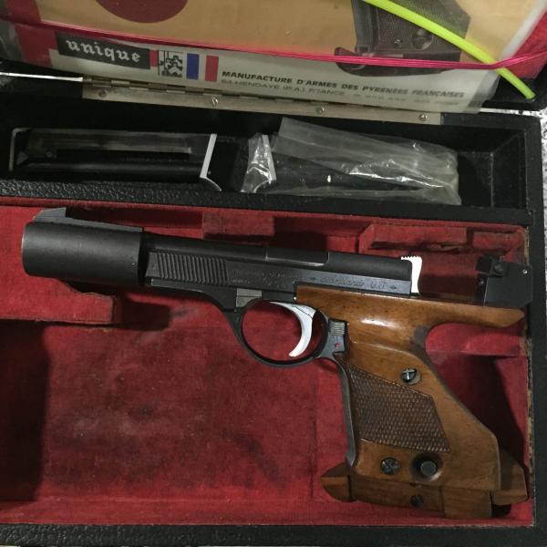 Se vende magnífica pistola UNIQUE modelo DES 69, de calibre 22 y guiada en F. La pistola dispara de maravilla, se entrega con maletín original e instrucciones así como dos cargadores. Estado excelente.