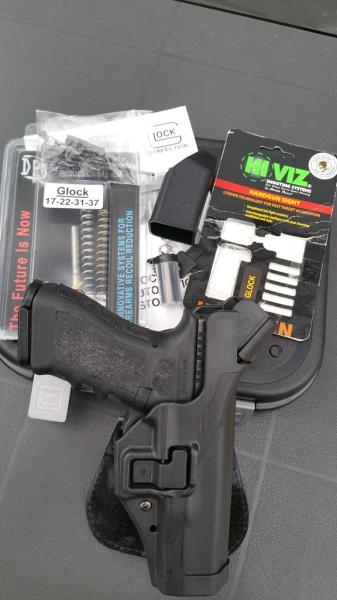 Buenas Noches, además de todos los accesorios que entrego con la pistola, añado un soporte como la marca H&S en el que podrás poner la funda Blackhawk y utilizar fácilmente para IPSC con sus dos reguladores para cualquier cinturón, e inamovible con sus dos seguros. O si lo prefieres, para portar el arma, pudiéndose quitar fácilmente del cinturón, quitando los dos seguros sólo de forma manual.