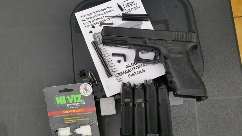 Buenas a todos, vendo mi popular pistola de la marca GLOCK, modelo 17 de la tercera Generación 9mm. Parabellum, con alza regulable, y CUATRO cargadores de 17 cartuchos de capacidad, dos que traía y otros dos cargadores modernos. Una maravillosa arma para portar, competir en IPSC, e incluso en Precisión, como la próxima tirada de GLOCK.