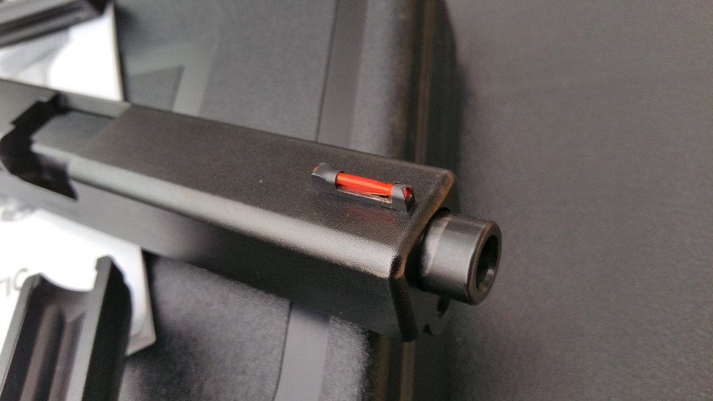 - Punto de mira de fibra ROJO instalado con CINCO RECAMBIOS para GLOCK (se entrega el de serie).