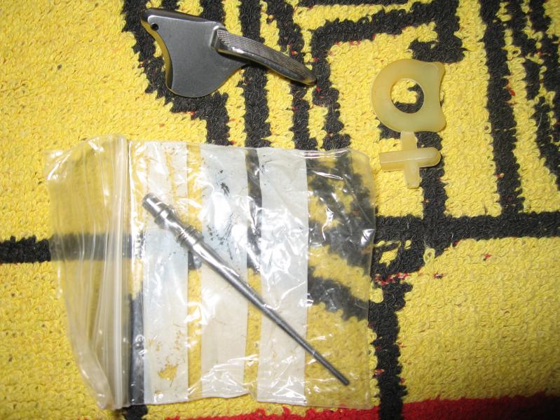 -Varios repuestos(aguja percutora,amortiguador,pieza para acortar el disparador,algunos tornillos de las cachas)