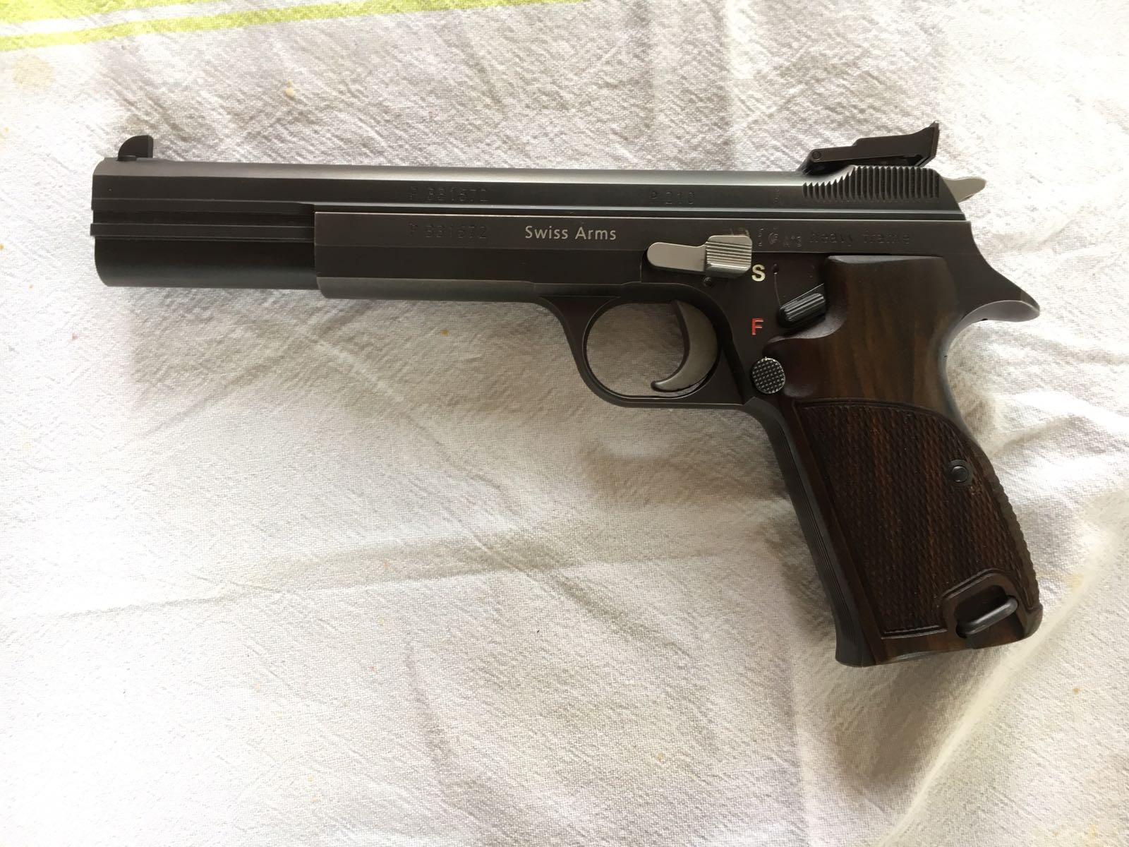 Se trata de una SWISS ARMS SIG P210 9mm 6"...con 2 cañones, el original y uno poligonal de PETER STAHL. Viene con 2 cargadores. Símplemente flamante.