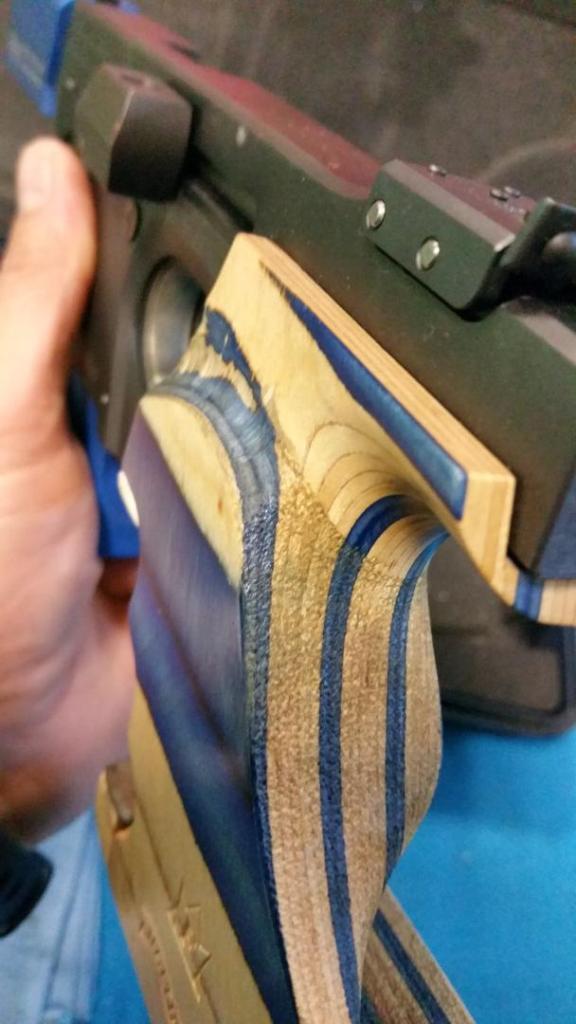 Aquí os pongo una foto del pequeño rebaje que le he hecho en el apoya dedos y en la otra foto, el disparador GSP.