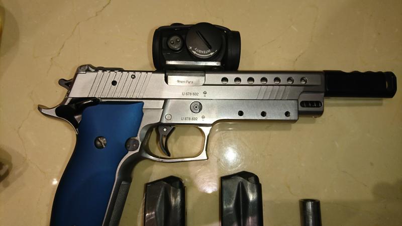 Vendo mi XFIVE de open + corredera y cañón del 40, con dos cargadores de 25, cargadores del 40, dos cañones de 9mm y visor Aimpoint H1 de 2 moa, el precio de la pistola completa es de 1850€, sin el visor 1450€ ( la montura se quedaria ya que esta hecha a medida y bajisima, sirviendo para C-more, Aimpoint y para los mini tipo RTR), sin el cañón de open 1300€. Esta a toda prueba y se puede tirar tanto mayor como menor, tanto en open como estándar. A toda prueba.