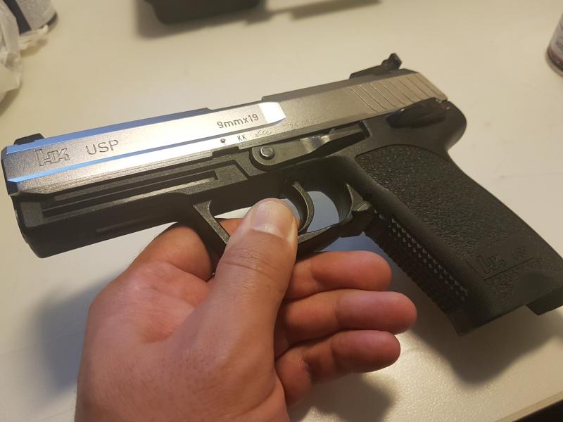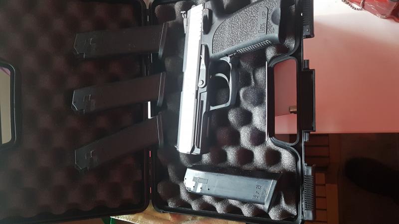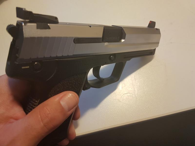 Se vende USP Standar bicolor 9mm PB con Alza micrométrica, Guiada en la F y se incluye: