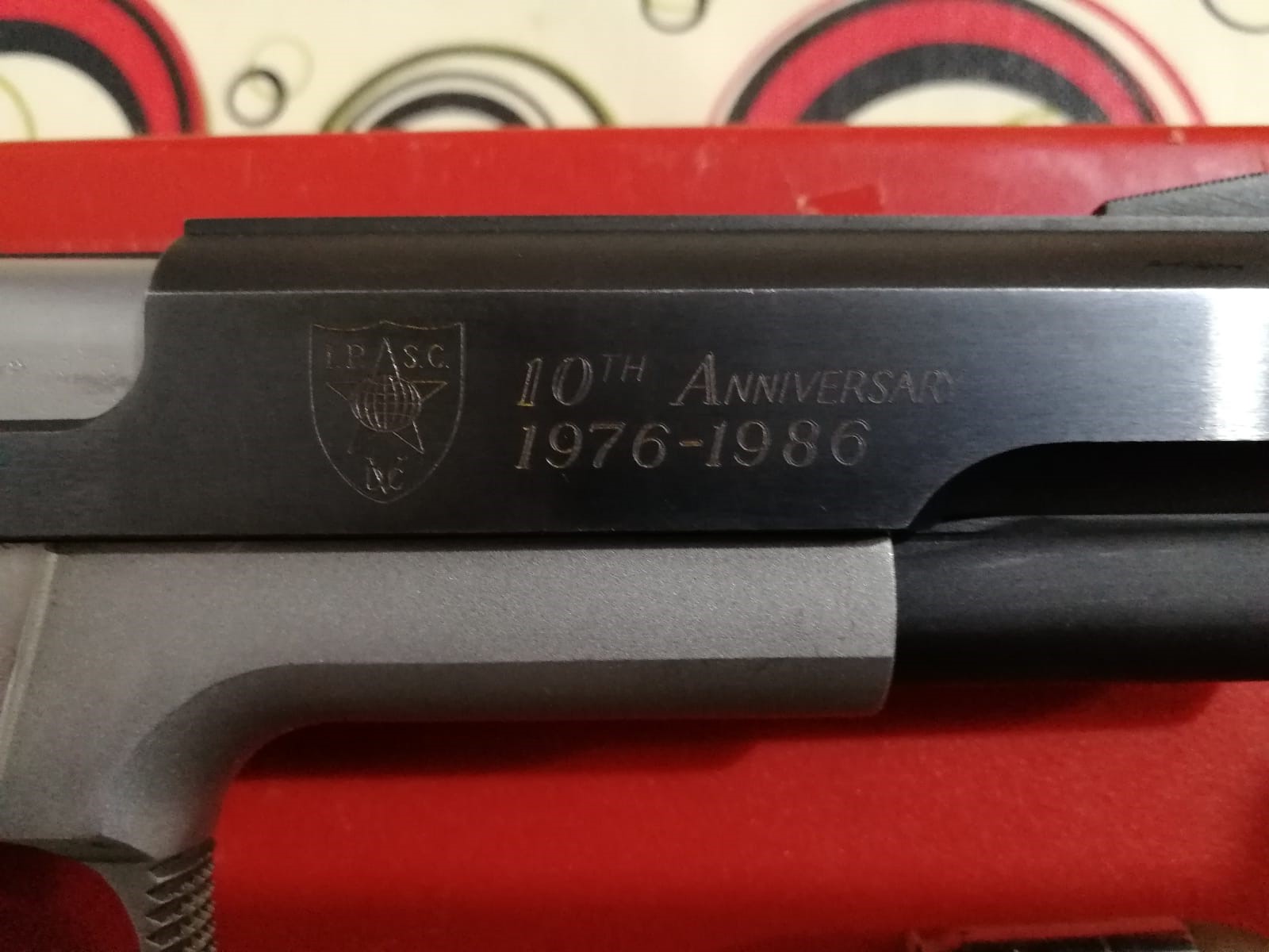 Se trata de un "SMITH AND WESSON MODEL 745" en calibre (.45ACP), es una Edición Especial ( I.P.S.C por el 10º ANIVERSARIO 1976-1986).