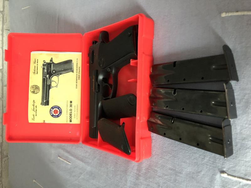 Se vende Star 30M, muy buen estado con caja original y 4 cargadores y un manual de la Ertzaintza.Por 230€, portes a cargo del comprador.