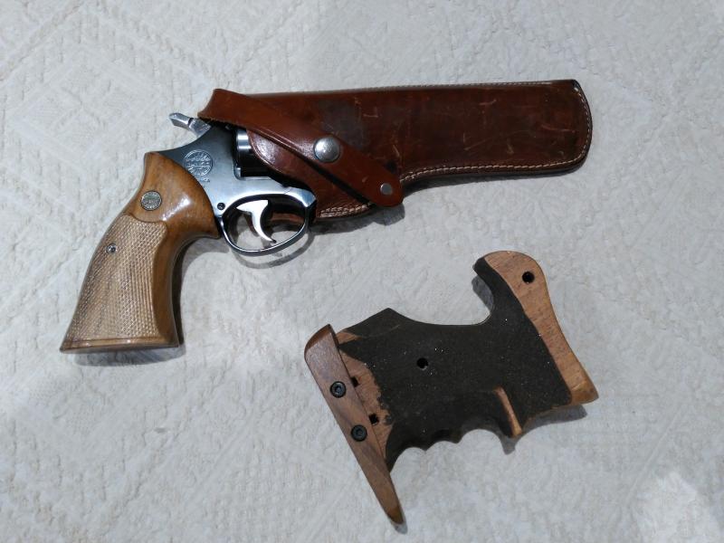 También dispongo de cacha anatómica talla M de reestreno. Originalmente es de S&W y se hizo una cuñita de madera para que funcionara perfectamente con el Astra sin tener que modificarla.